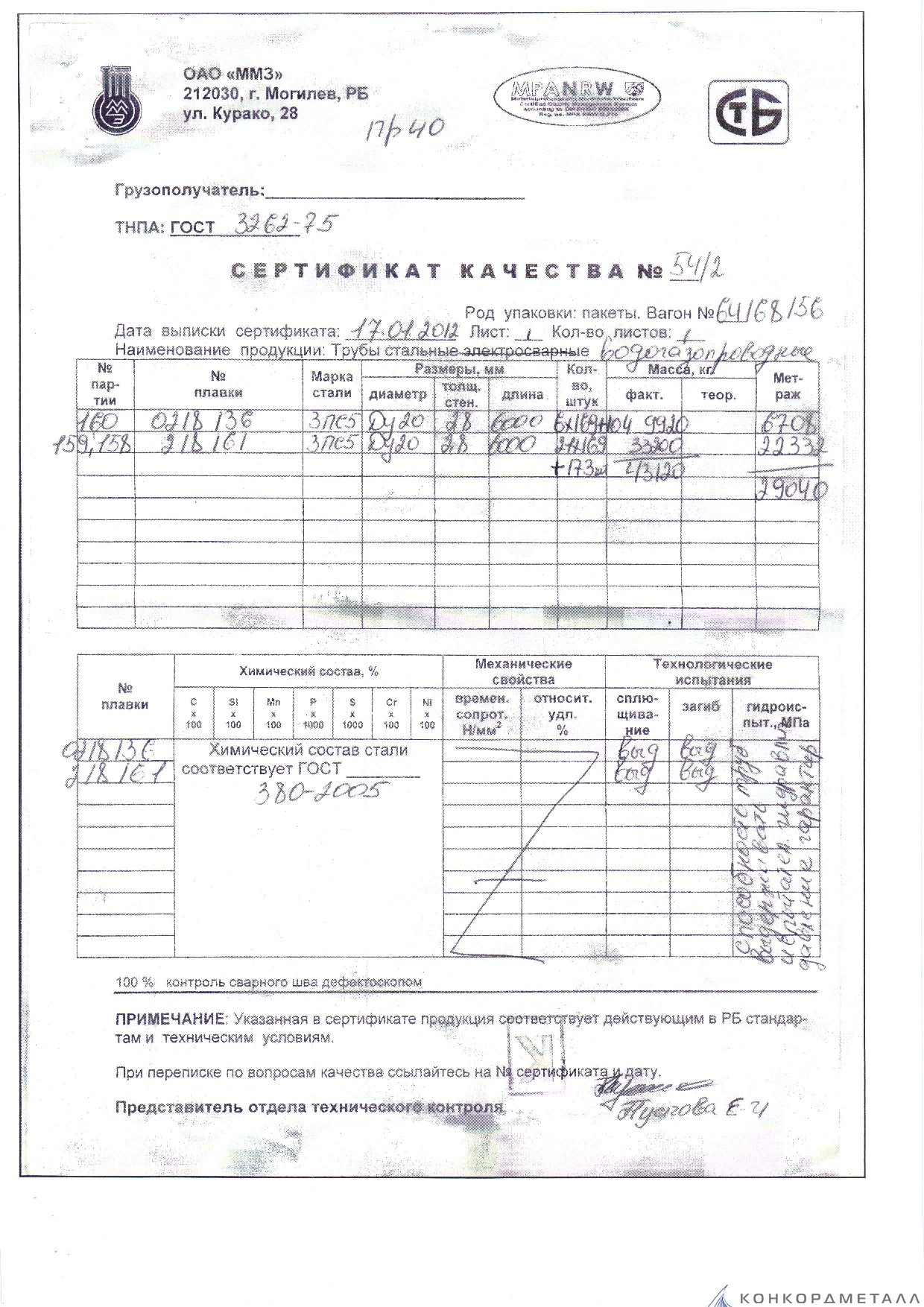 С каждой товарной позицией мы предоставляем все сертификаты и паспорта качества, а также товарно-транспортную накладную.